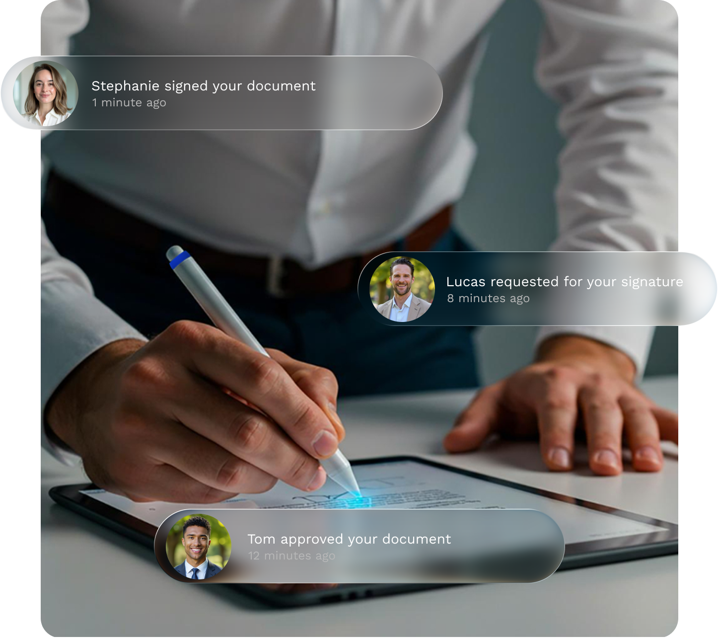 No app, no account. Sign anywhere using any browser or device with guided fields, real time updates, and optional two-factor security.